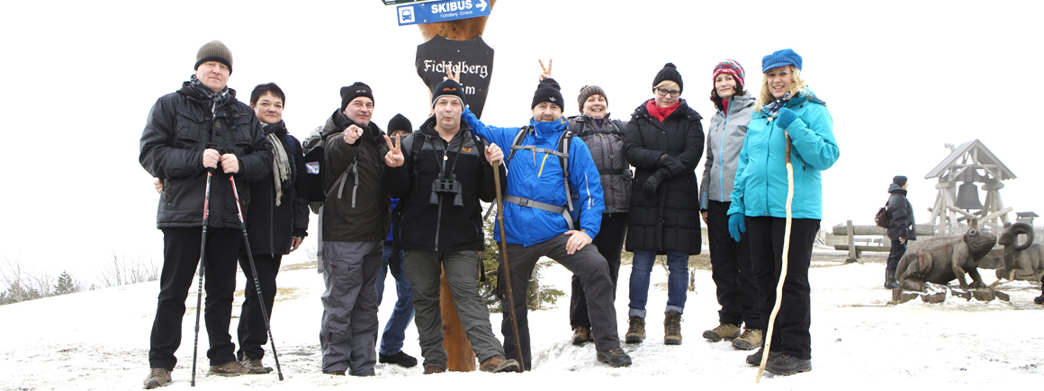 So nun ist es wieder soweit, das Wandern hat mit der alljährlichen Flucht vor dem Karneval begonnen. Dieses Jahr hat es uns nach Oberwiesenthal verschlagen. Unsere erste Wanderung 2014, führte uns mit der Fichtelberg Schwebebahn hoch auf den Fichtelberg, um dann zu Fuß wieder runter nach Oberwiesenthal zu wandern. Bevor es aber los ging, hatten wir erst noch eine schöne Kaffeerunde im Fichtelberghaus.